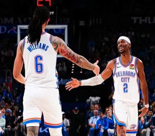 亚历山大之后,是复出首秀的杰伦·威廉姆斯。雷霆一方明显还是在把控时间,仅仅只让他出战了21分钟,投篮14投8中砍下18分4篮板6助攻。
