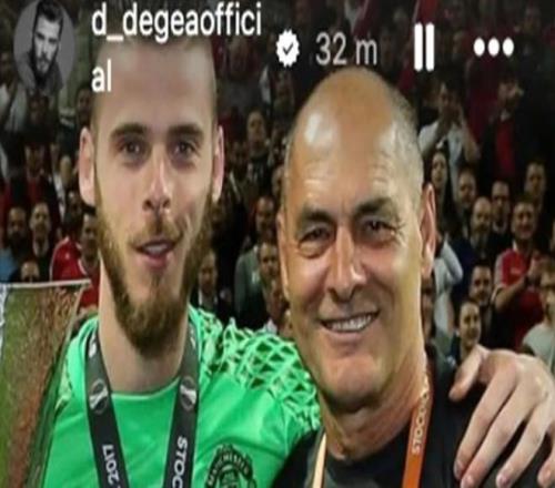 德赫亚在社媒发布照片悼念前教练,配文:“安息吧。”
