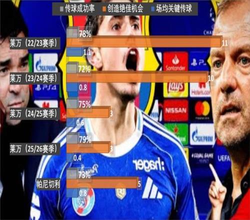 帕尼切利如果可以来巴萨,应该能够做好莱万的大部分工作,给拉菲尼亚和亚马尔做球,帮助巴萨中场向前推进。