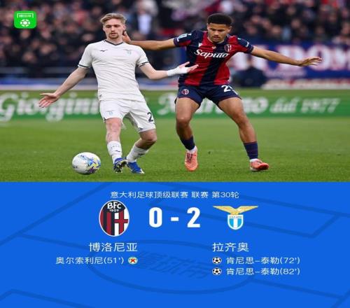 北京时间3月22日意大利足球顶级联赛第30轮,博洛尼亚主场对阵拉齐奥。上半场奥尔索利尼罚失点球,下半场肯尼思-泰勒首开记录,随后肯尼思-泰勒破门扩大比分。最终比分博洛尼亚0-2拉齐奥。