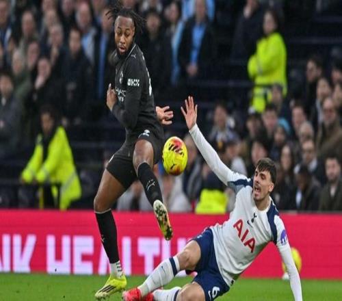 新华社照片,伦敦,2026年2月2日 2月1日,曼城队球员塞门约(左)与热刺队球员帕利尼亚拼抢。 当地时间2月1日,在2025-2026赛季英格兰足球超级联赛第24轮比赛中,曼彻斯特城队客场2比2战平托特纳姆热刺队。 新华社发